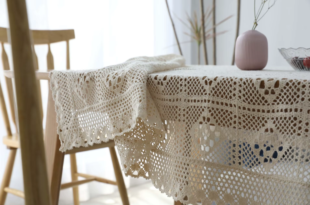 | Święta i wyjątkowe okazje | Obrus szydełkowy lub koronkowy | Klasyka, styl retro, przytulny klimat |
